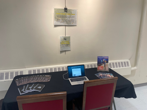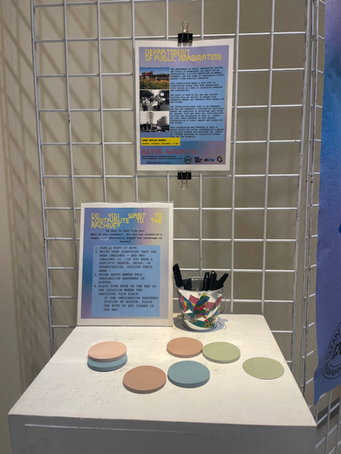 This play is an invitation to dive into ones own family and community history, and so the gallery aided with this invitation by providing a number of interactive installations created both by myself and team, as well as local organizations and artists who we partnered with on the production. Each of the installations built off the plays themes. For example, we partnered with American Ancestors to have a few different stations in the gallery for people to start learning about their own family history through worksheets and online resources. We also displayed replica family tree's from American Ancestors collection. Our partner the Repair America Collective displayed an enlarged version of their zine WHERE IS OUR 40 ACRES AND A MULE on the gallery walls, with post it notes for audience members to respond to the prompts on the pages. Lastly, our partners with the Department of Public Imagination had their "Mapping Imagination Work in Boston" interactive map and archive, connecting both to the plays theme of understanding the history of place and connecting the play to the city we produced it in.