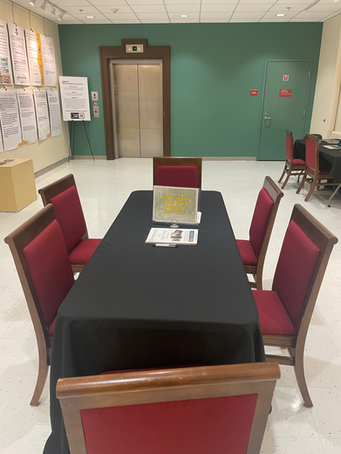 In addition to these installations created by our partners, the focal point of the gallery was the audience response tree installation "Rooted in Memory, Seeding the Future". I created a human size tree sculpture, with rolled book pages spiraling out from beneath the tree bark. I used fallen tree limbs to create the trees branches which hung photos and stories. The book pages alluded to the revelation in the play in which the deed to the land Sofia is searching for is found inside of an old pecan tree on the property, having been placed there by an ancestor generations before. I asked the cast and creative team to share a photo of themselves and an ancestor, along with a memory of that ancestor or reflection about what kind of ancestor they hope to become. These stories populated the tree's limbs, and audience members were invited to read these stories of the cast members and participate themselves. Using leaf post-it notes they could write a memory of an ancestor, or about the seeds they were planting now for future generations to harvest, and then place them on the wall around the trees limbs. Throughout the run the tree was a beautiful collection of memories and hope.